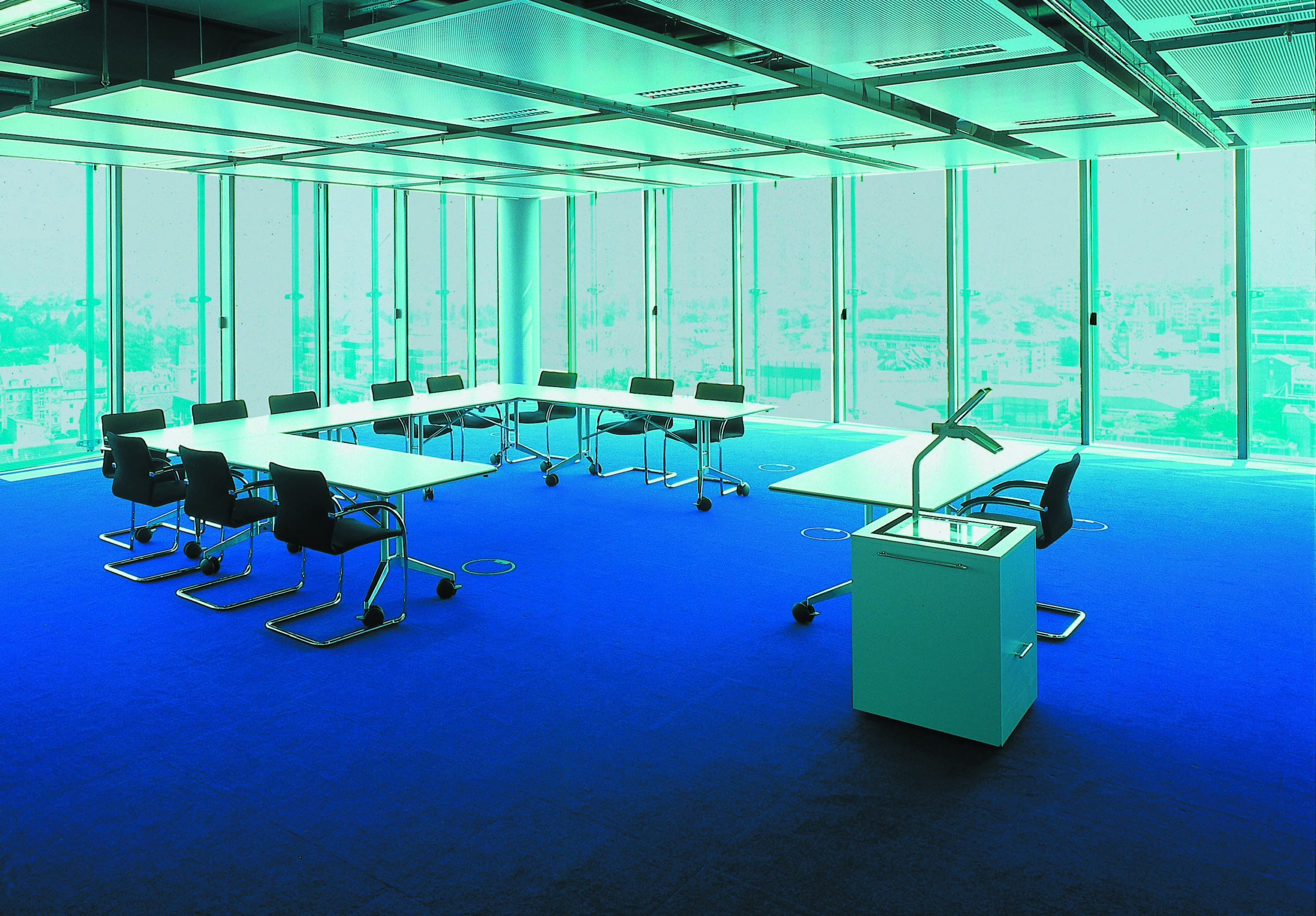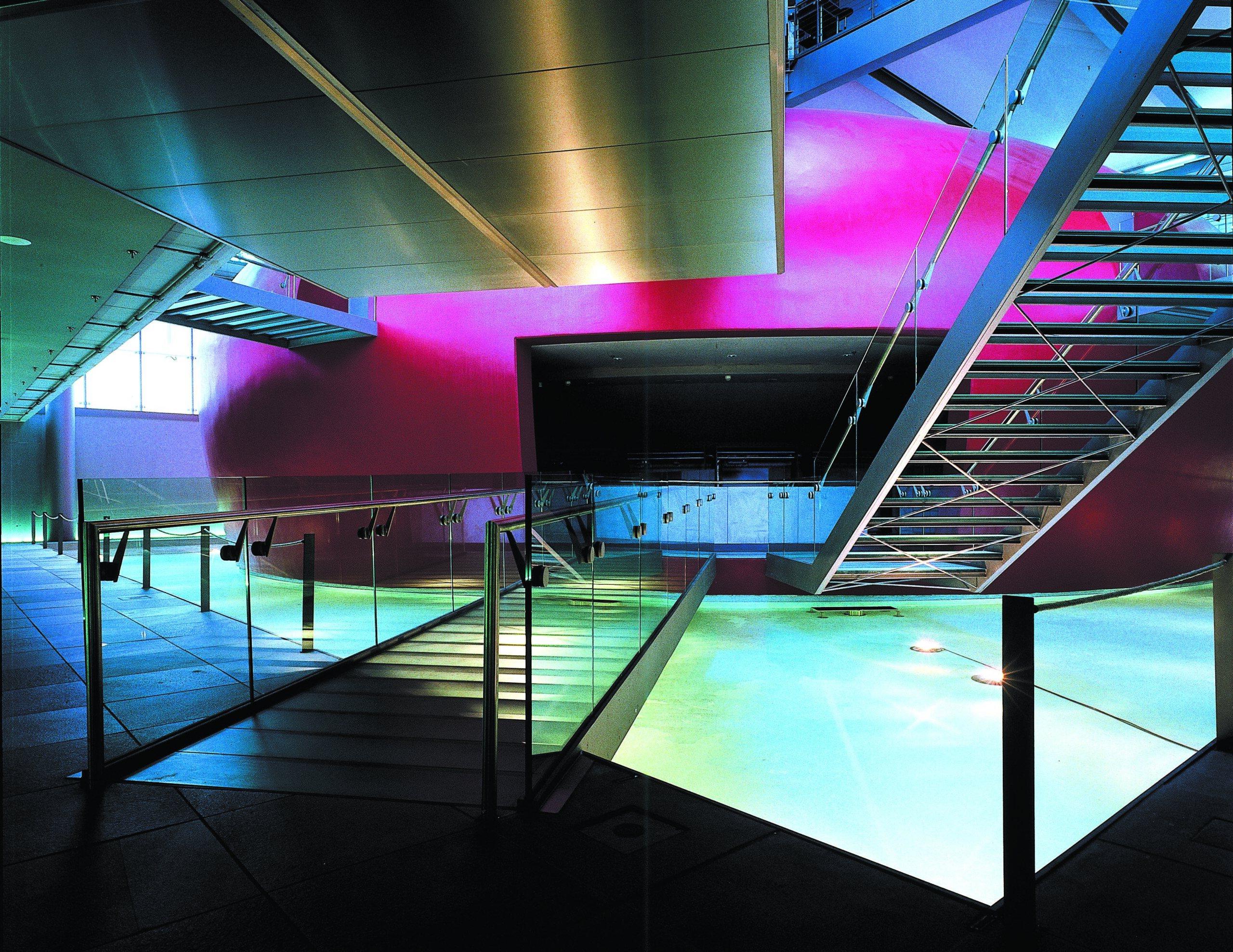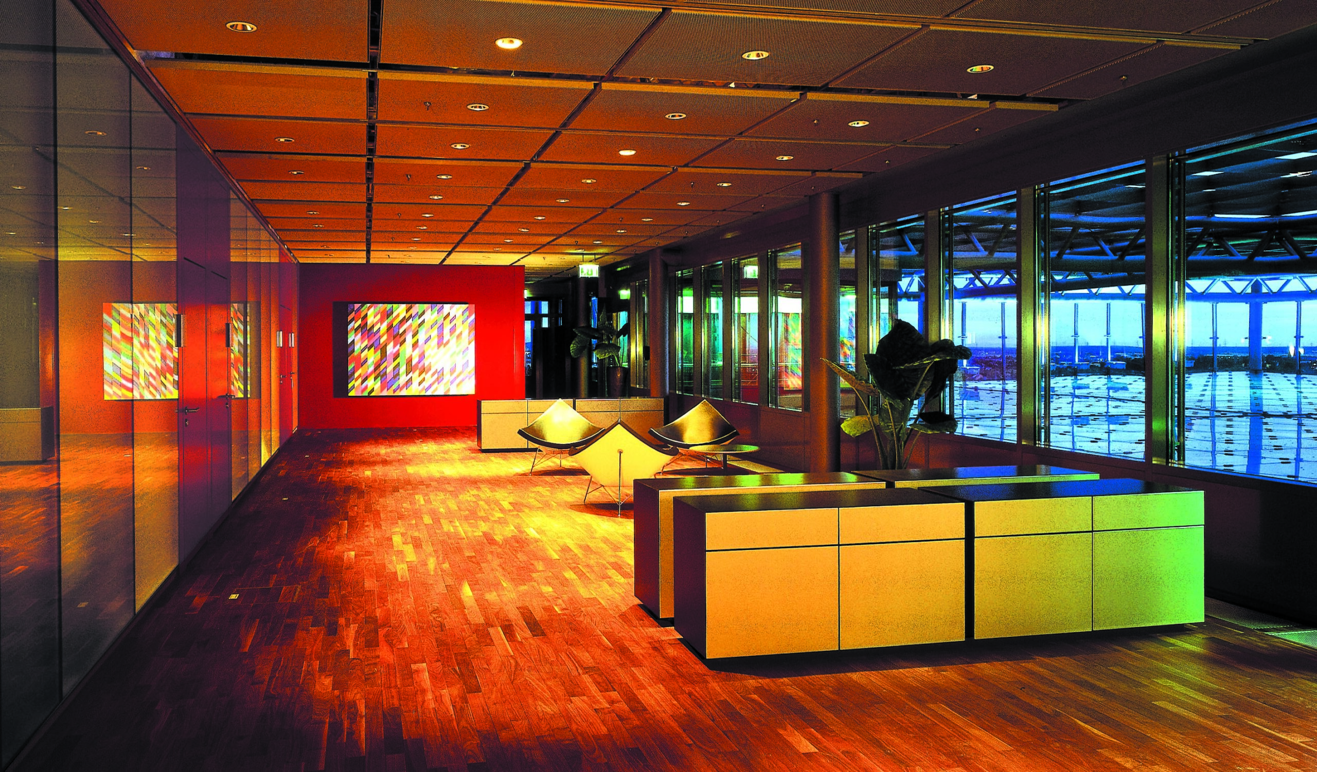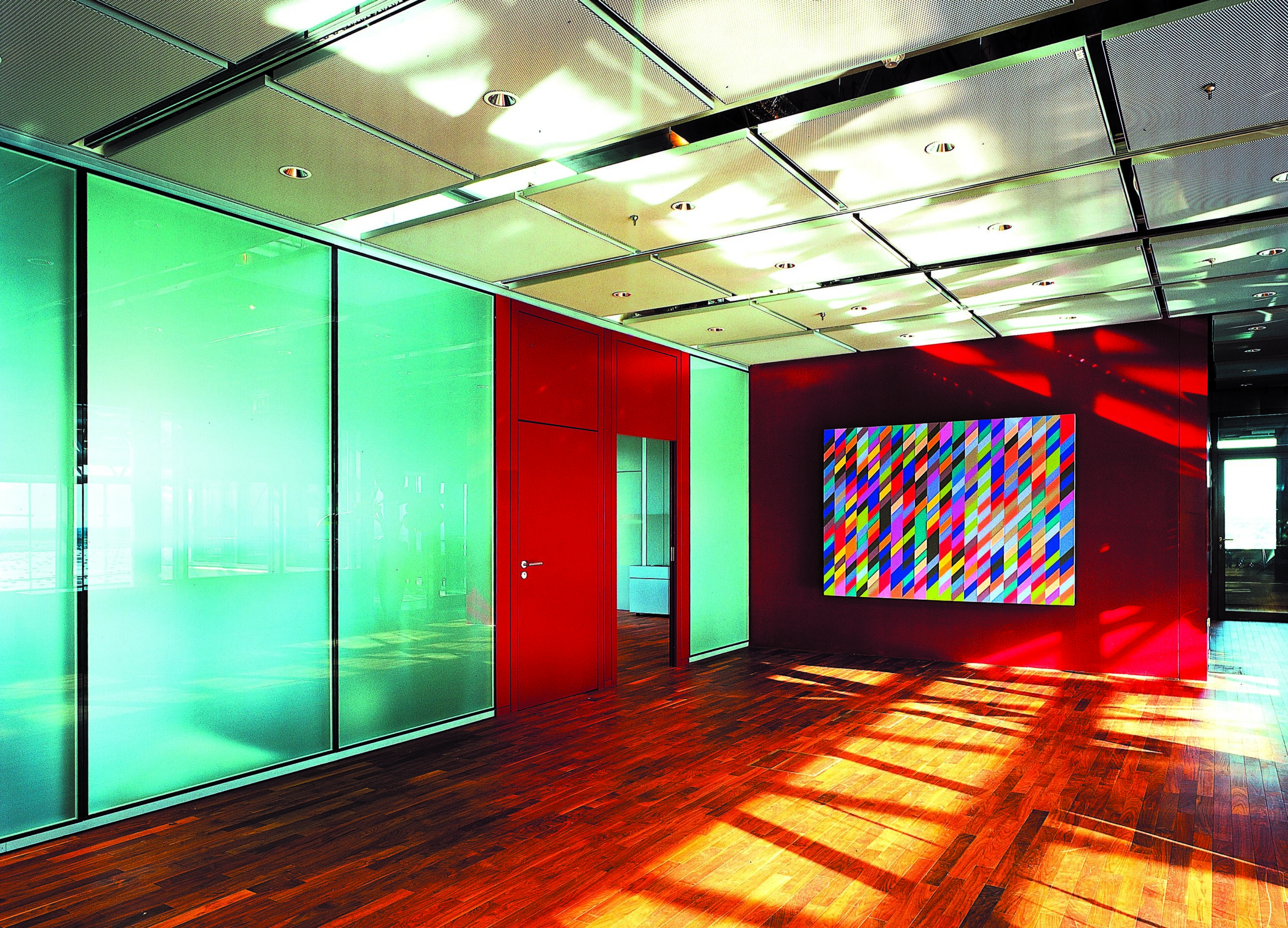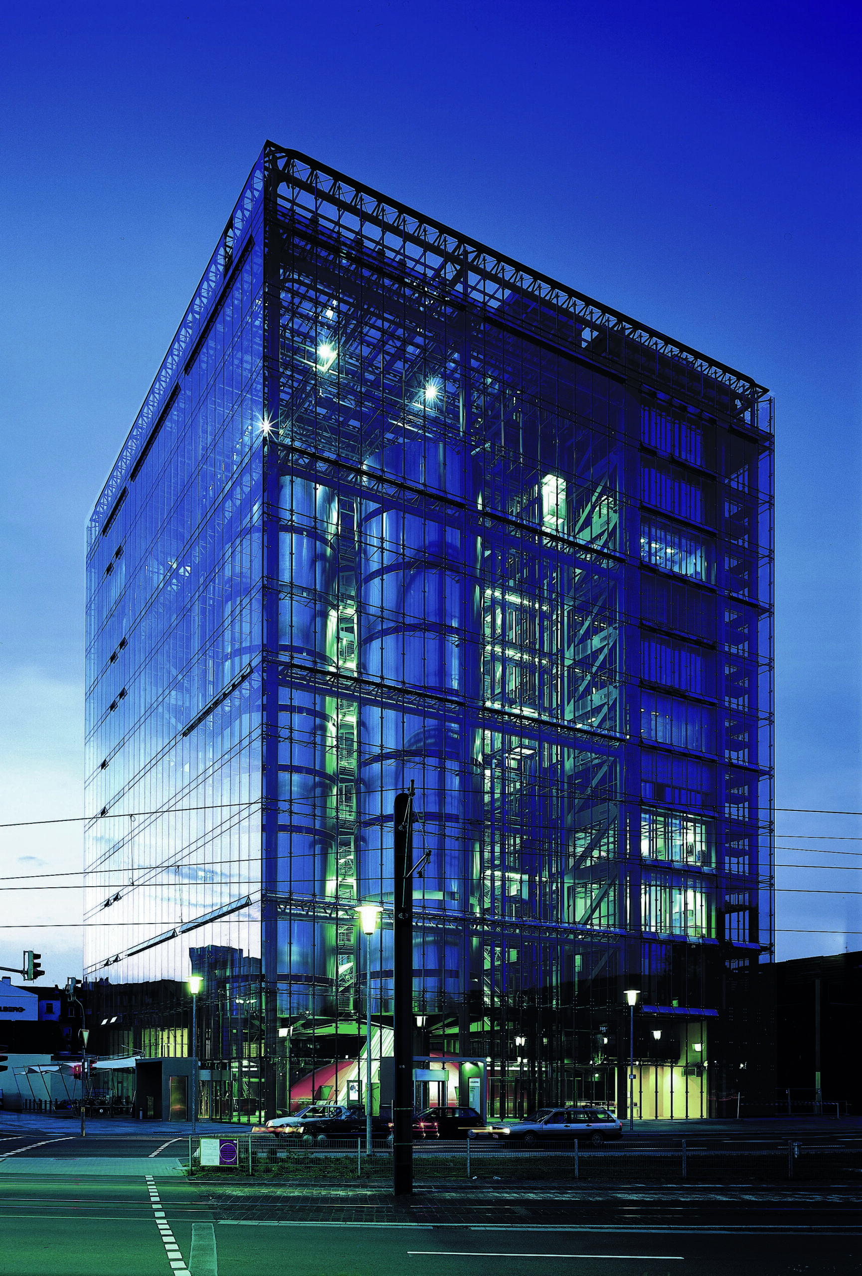Die Handschrift von Andreas Pohlmann: Als Projektarchitekt war Andreas Pohlmann für die Bereiche Hörsaal, Türme, Foyer und Vorstandsbereich verantwortlich. In den Leistungsphasen 1 bis 5 und in der Innenarchitektur von 1996 bis 2000 trug er entscheidend zur Gestaltung und Umsetzung des Projekts bei.